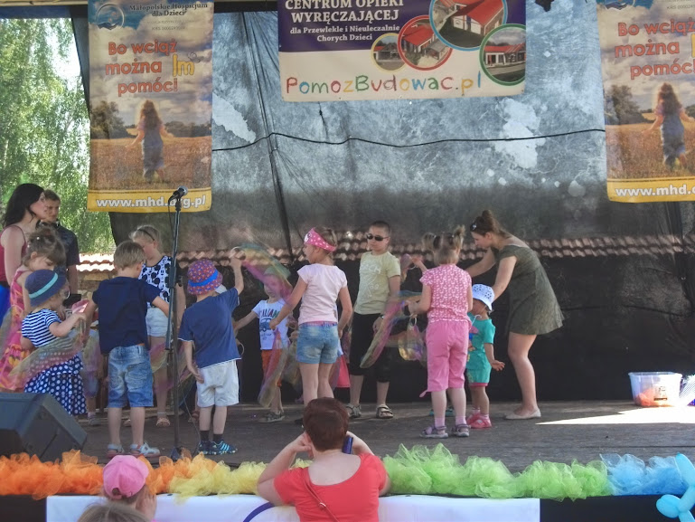 Po raz szósty Małopolskie Hospicjum dla Dzieci organizowały Bajkowy Dzień Dziecka, a dla nas był to pierwszy dzień dziecka, w którym braliśmy udział. Było cudownie ! Pogoda była fantastyczna, dopisała niesamowicie. Bawiliśmy się świetnie. Cały dzień spędziliśmy na kocyku pod drzewem, grała muzyczka, była kiełbaska z grilla i soczki. Dla dzieci było mnóstwo atrakcji - dmuchane zabawki, malowanie twarzy, gra na instrumentach, pokazy straży pożarnej, wyścigowe maluchy, naprawdę mnóstwo!!!!